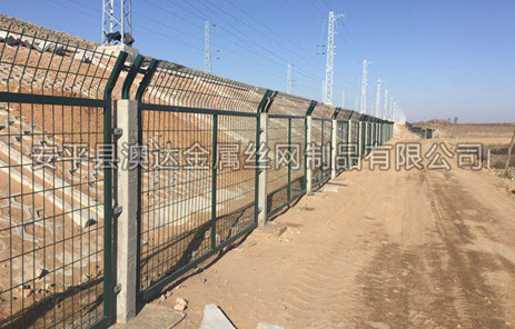 鐵路防護(hù)柵欄主要分鍍鋅防護(hù)柵欄、浸塑防護(hù)柵欄倆大種類,是以立柱加網(wǎng)片連接而成。